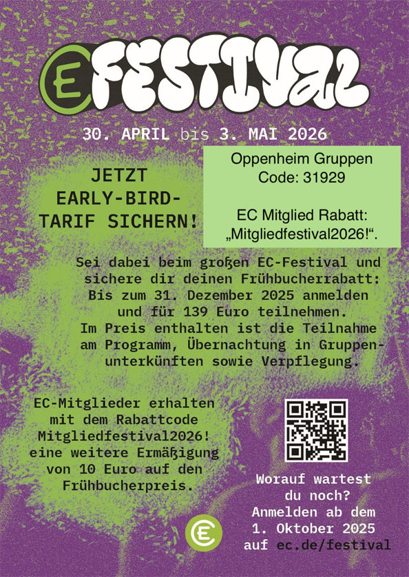 Dabei wünschen wir Ihnen viele gute Eindrücke und Erfahrungen und ermutigen Sie, über den Glauben an Jesus Christus nachzudenken und dabei neue Lebensperspektiven zu entdecken.
